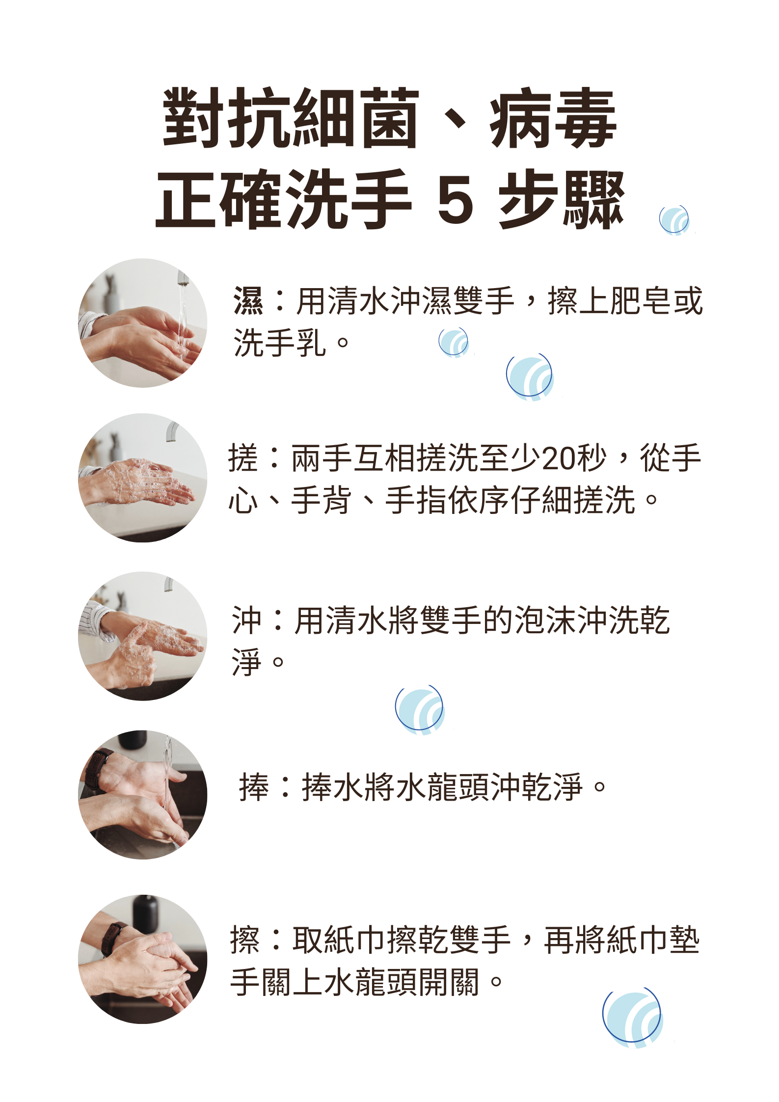 stp2.均勻塗抹,從手背搓羅至掌心、指尖,參考以下5步驟。