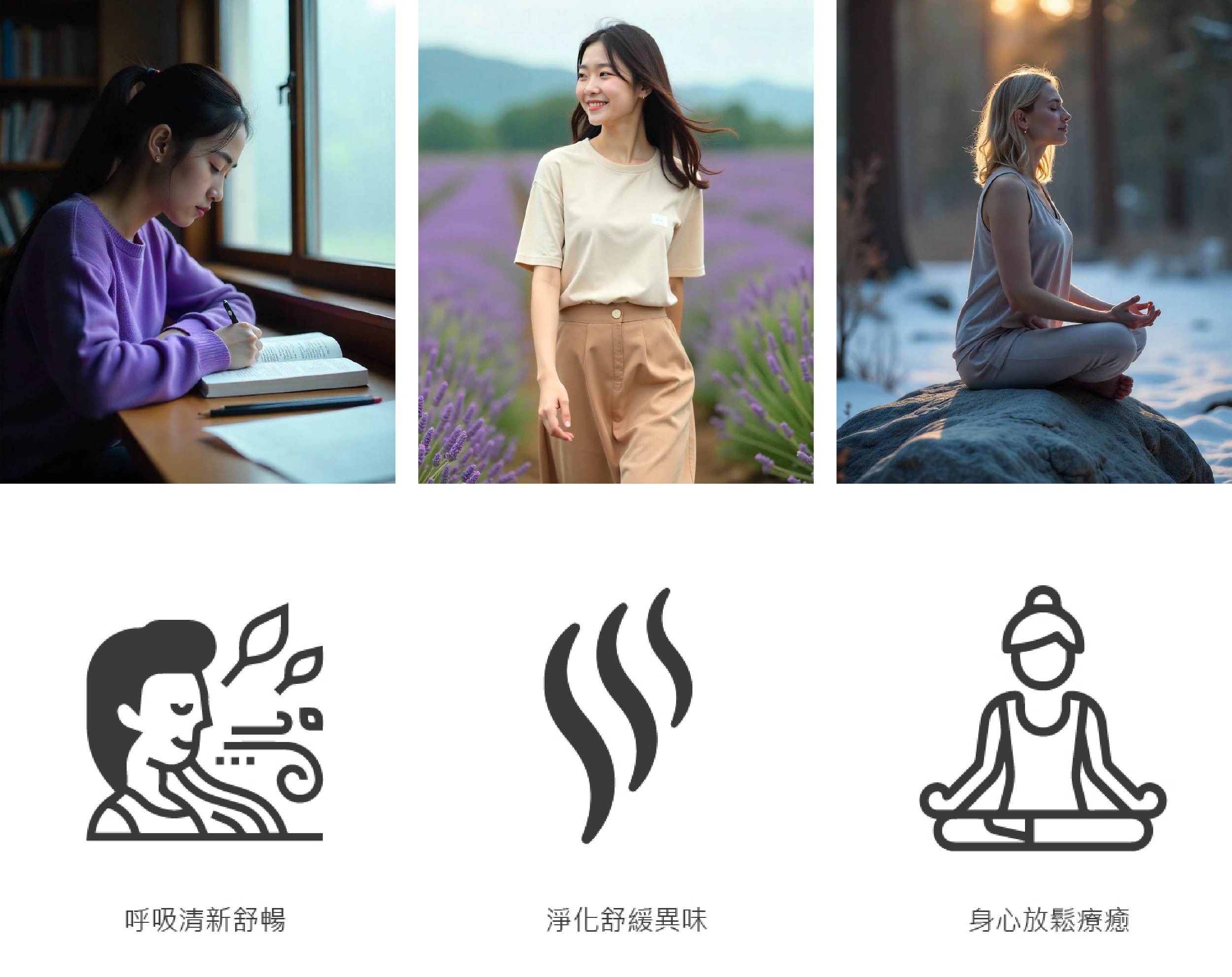 - 關鍵字:思緒清晰、安撫靜緒、放鬆、助眠